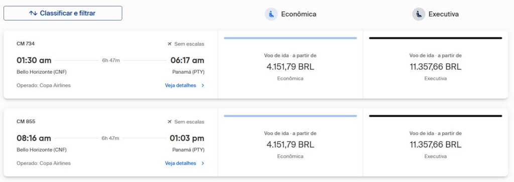 Além das frequências extras, a rota mantém sua operação regular diária. Nesse caso, o voo parte de Belo Horizonte às 01h30, chegando ao hub da companhia no Panamá às 06h17. No sentido contrário, a decolagem ocorre às 15h32, com chegada em Confins às 00h30.