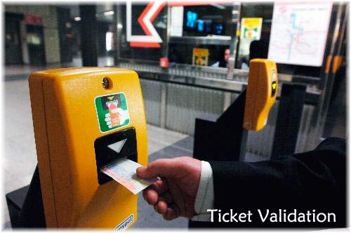 Como o ticket já foi validado no ônibus, não é necessário validar novamente na estação de metrô, somente passe e se dirija à plataforma correta. Além do ônibus e do metrô, o ticket vale também para o tram, que é similar aos nossos antigos bondes.