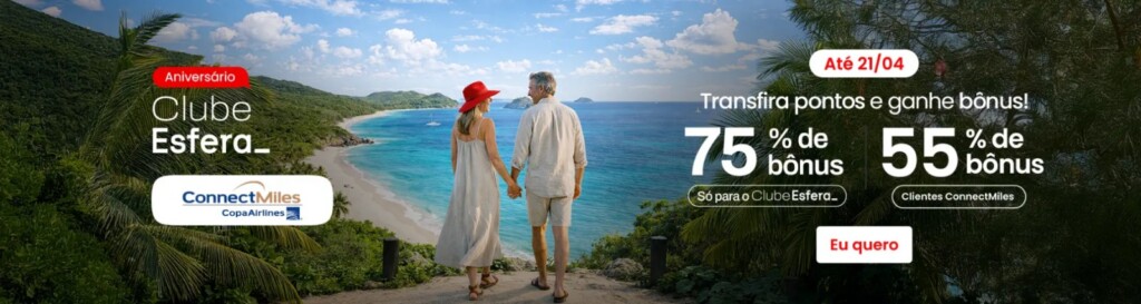 A Esfera lançou uma nova campanha em parceria com o ConnectMiles, oferecendo até 75% de bônus na transferência de pontos. A oferta é válida até 21 de abril. Confira os detalhes a seguir e aproveite!