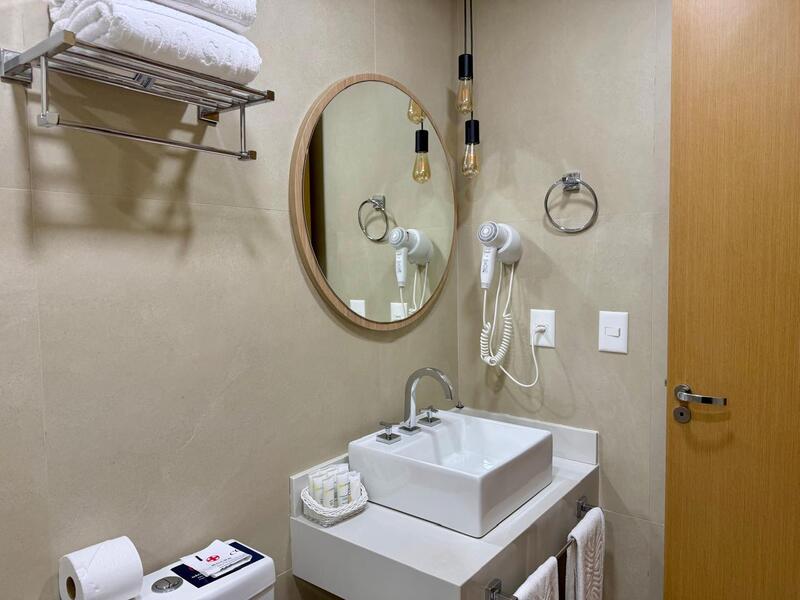 O nosso apartamento possuía um banheiro com bom tamanho, ducha potente, toalhas cheirosas, amenities da marca própria do Costão e secador de cabelos.