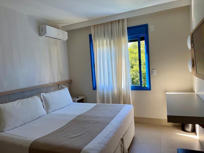 O resort oferece diversas opções de acomodação, tanto no Hotel Internacional quanto nas Vilas Portuguesas. As vilas são construções em estilo português, espalhadas pelo resort, e oferecem um clima mais residencial. Já ficamos anteriormente em uma suíte, mas desta vez optamos por um apartamento completo, que surpreendeu pela estrutura. O espaço incluía: