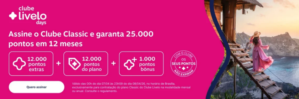 Já considero essa oportunidade para adesão ao Clube Classic um padrão que a Livelo vem ofertando em comparação as promoções anteriores. Mas lembre-se de que é necessário permanecer no clube por 12 meses para garantir o bônus total, então considere isso no momento da assinatura.