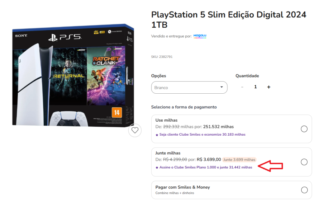 Na compra do Playstation 5, considerando a pontuação base, é possível acumular até 31.442 milhas Smiles nesta promoção. Já os assinantes do Clube 20.000 ou Clientes Diamante recebem 36.990 milhas Smiles.
