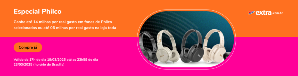 Está de olho nos fones da Philco? A Smiles está oferecendo aos seus clientes até 14 milhas por cada real gasto em fones selecionados no Shopping. Essa oferta é válida até o dia 23 de março. Vamos aos detalhes!