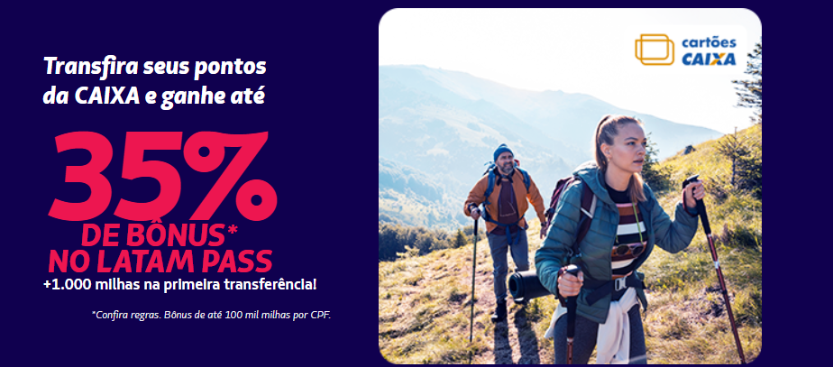 O LATAM Pass, em parceria com a Caixa, lançou uma nova promoção que oferece até 35% de bônus na transferência de pontos do cartão. Se você é cliente Caixa e está pensando em turbinar seu saldo no programa da LATAM, essa pode ser uma boa oportunidade. A oferta é válida até 30 de abril — confira os detalhes a seguir!