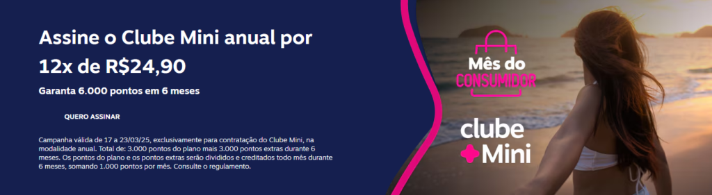 - A assinatura do Clube Mini não gera o direito de pontos bônus por tempo de permanência no Clube Livelo.