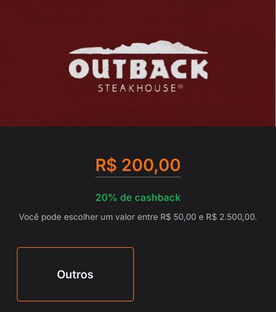 20% de cashback no Outback no Banco Inter