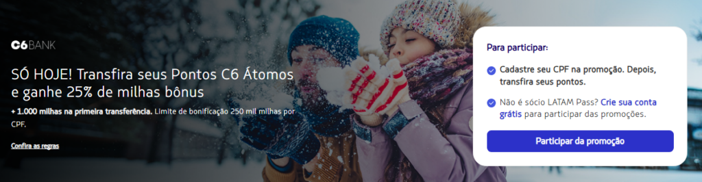 Veja os bônus de transferência de pontos nas últimas campanhas entre o C6 Bank e o LATAM Pass.