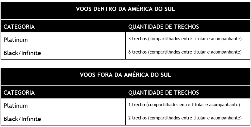 Confira abaixo a quantidade de Trechos de cortesia por categoria do cartão: