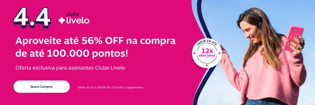 A Livelo lançou uma nova campanha em que os clientes do clube podem comprar pontos com até 56% de desconto. A oferta é válida até domingo, dia 5 de abril, e você confere a seguir todas as regras e condições para decidir se vale a pena participar.