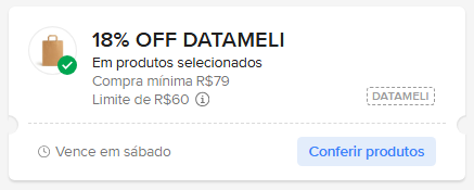 - DATAMELI – 18% OFF em compra mínima de R$ 79 com limite de R$ 60