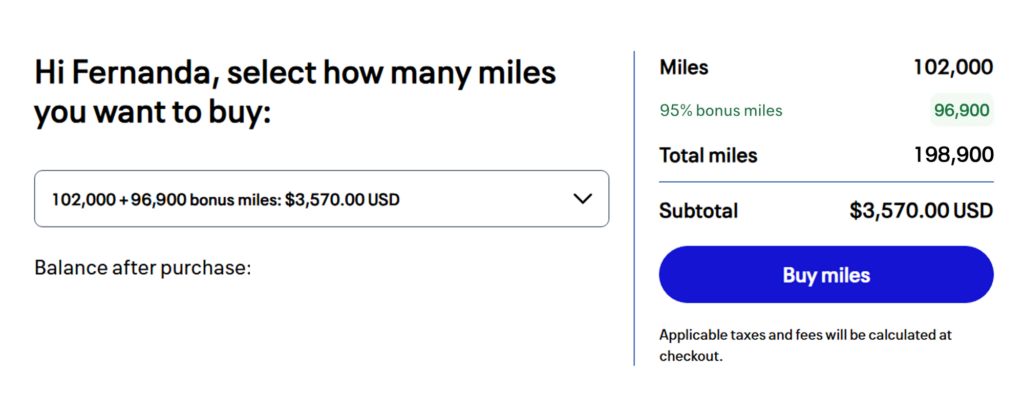 - O limite de compra é de 102.000 milhas da por transação (antes do bônus) e até 200.000 milhas por ano;