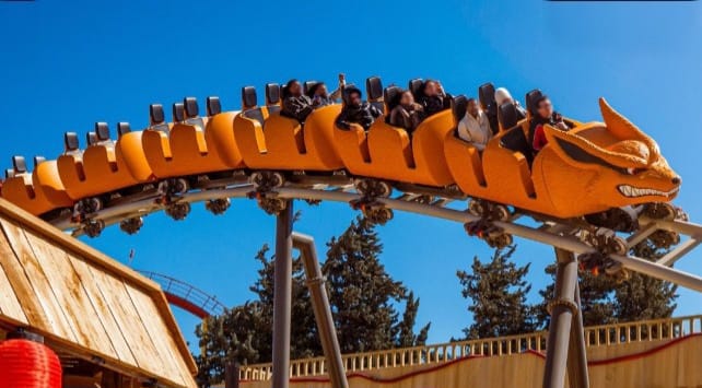 Atrações e a montanha-russa da Raposa de Nove Caudas