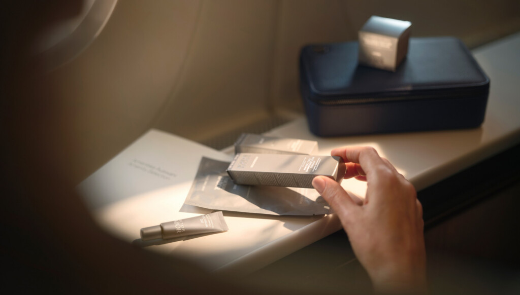 A experiência premium se estende também ao conforto a bordo. A Lufthansa introduziu um novo conceito de amenity kit em parceria com a marca alemã BABOR, como já divulgamos aqui no PPV.