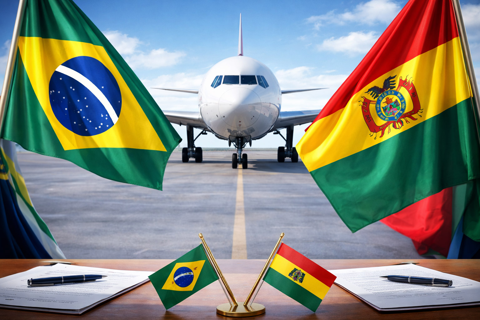 Acordo assinado entre Brasil e Bolívia elimina limites de voos entre os países. Companhias agora podem definir livremente frequências de passageiros e carga, o que deve ampliar a oferta e a conectividade.