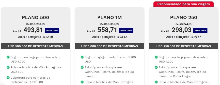 Abaixo, confira o exemplo de uma viagem para a Europa de 8 dias, para um passageiro de 28 anos.