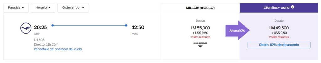 A partir do Brasil, por exemplo, uma emissão de São Paulo (GRU) para Munique (MUC), voando com a Lufthansa na classe econômica, saltou de 50.000 para 55.000 milhas LifeMiles, um aumento de 10%.