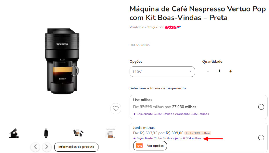 Na compra da cafeteira abaixo é possível acumular até 6.384 milhas Smiles nesta promoção.