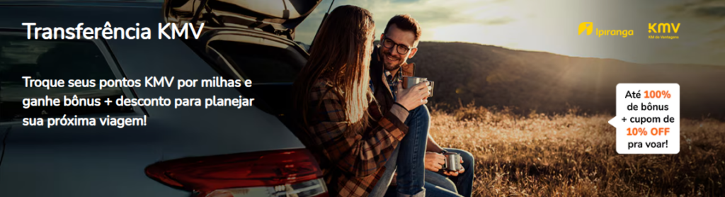 Smiles e KMV lançaram uma nova promoção que oferece até 100% de bônus na transferência de pontos para o programa de fidelidade. Além disso, você também recebe um cupom de até 10% OFF para voar com GOL ou companhias parceiras. A oferta é válida até o dia 15 de junho. Confira os detalhes abaixo.