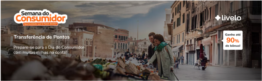 - 90% de bônus – Clube Livelo + Clientes Diamante e/ou Clube Smiles