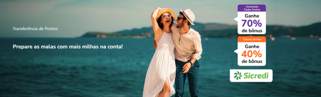 A Smiles, em parceria com a Sicredi, está oferecendo aos seus clientes até 70% de bônus na transferência de pontos. A promoção é válida somente até hoje, 14 de abril. Vamos para os detalhes!
