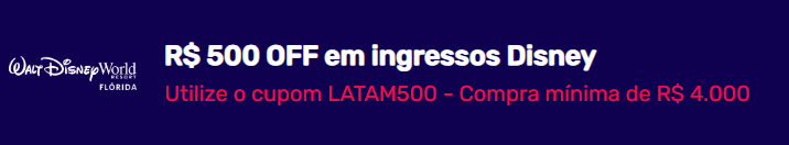 A LATAM está com uma oportunidade para quem pretende ir para Disney! A campanha oferece até R$ 500 de desconto na compra de ingressos para o Walt Disney World Resort. Mas corra, que essa oportunidade acaba hoje! Veja abaixo como funciona e aproveite para economizar em sua próxima viagem.
