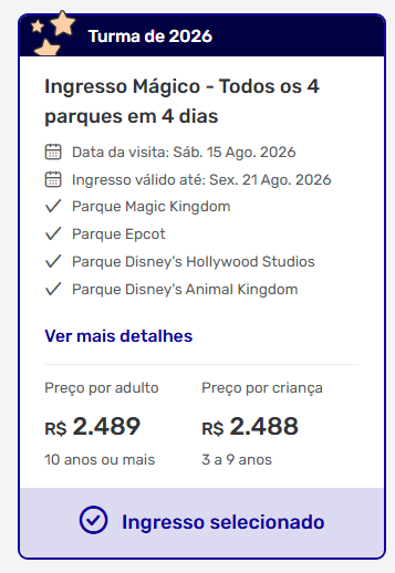 - Os ingressos da Disney e seus adicionais são intransferíveis;