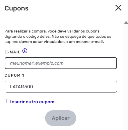 - Indispensável o uso do cupom LATAM500 na página de pagamento;