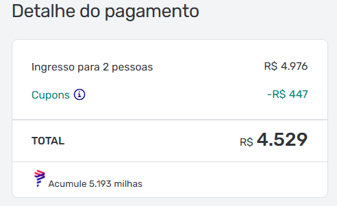 Após selecionar os ingressos desejados, role a página até encontrar a opção “Ative seu cupom aqui”, conforme indicado abaixo: