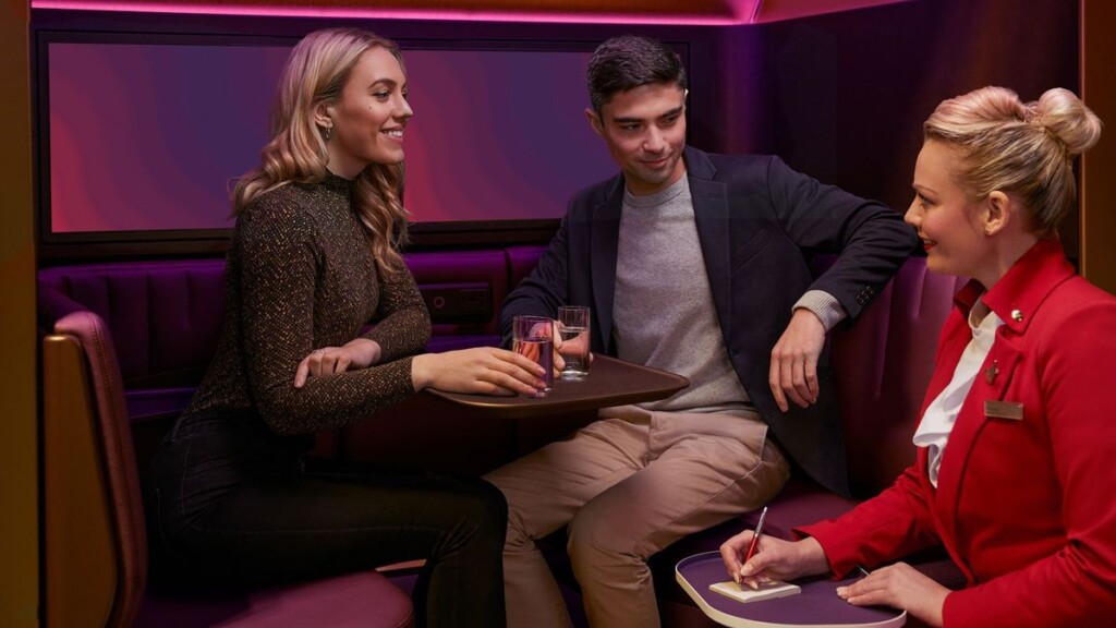 Nos novos modelos de aeronaves, a Virgin já vinha sinalizando a transição. Os bares deram lugar a espaços como The Loft (A330neo e A350), uma sala com sofás e telas, e o mais intimista The Booth, com apenas dois assentos e foco em experiências personalizadas como degustações de vinho ou jantares românticos.