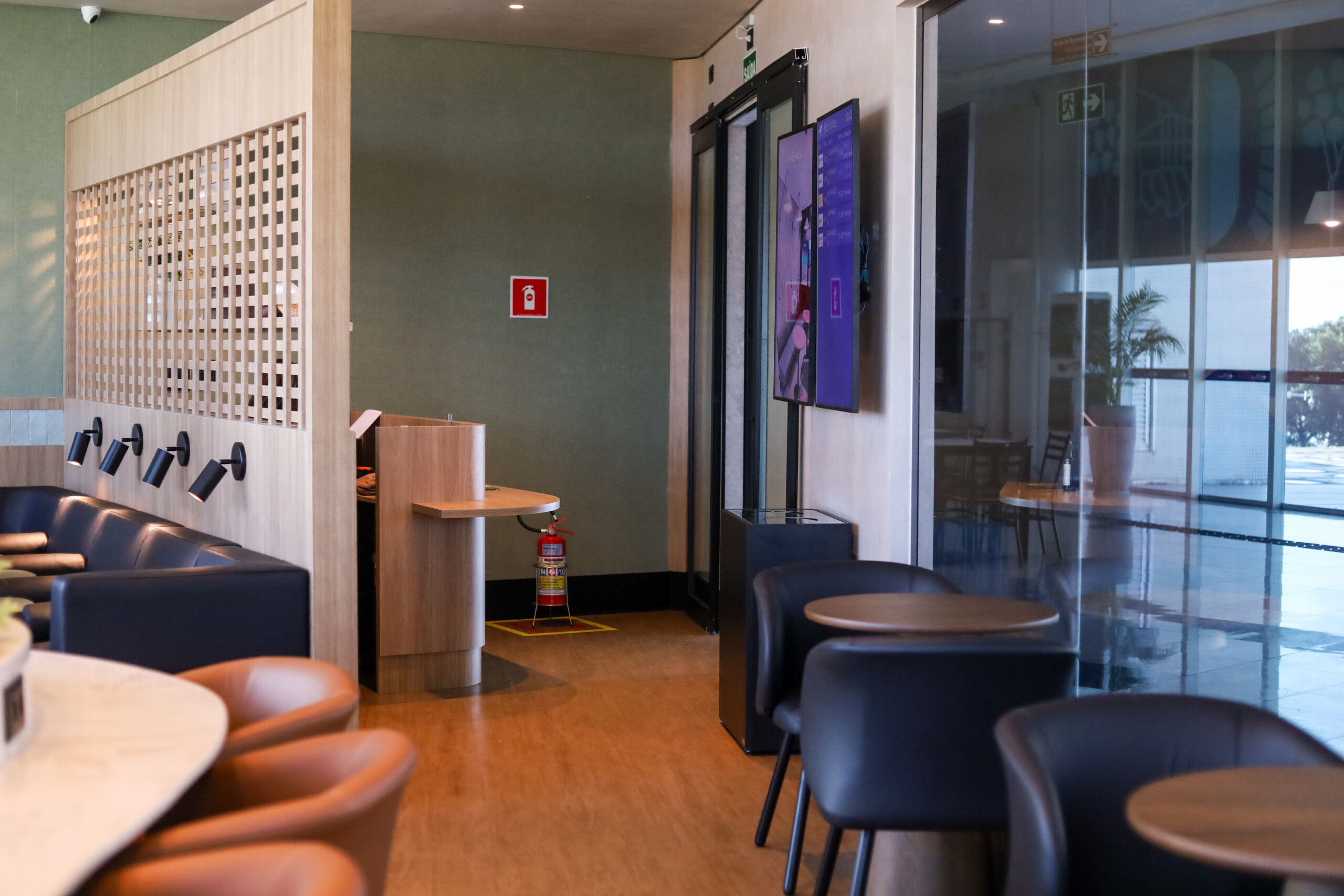 Com 75,55 metros quadrados, o espaço tem vista para a pista de pousos e decolagens, e oferece estrutura para descanso, cafés, buffet, bebidas alcoólicas e não-alcoólicas, entre outros serviços voltados ao conforto do passageiro.